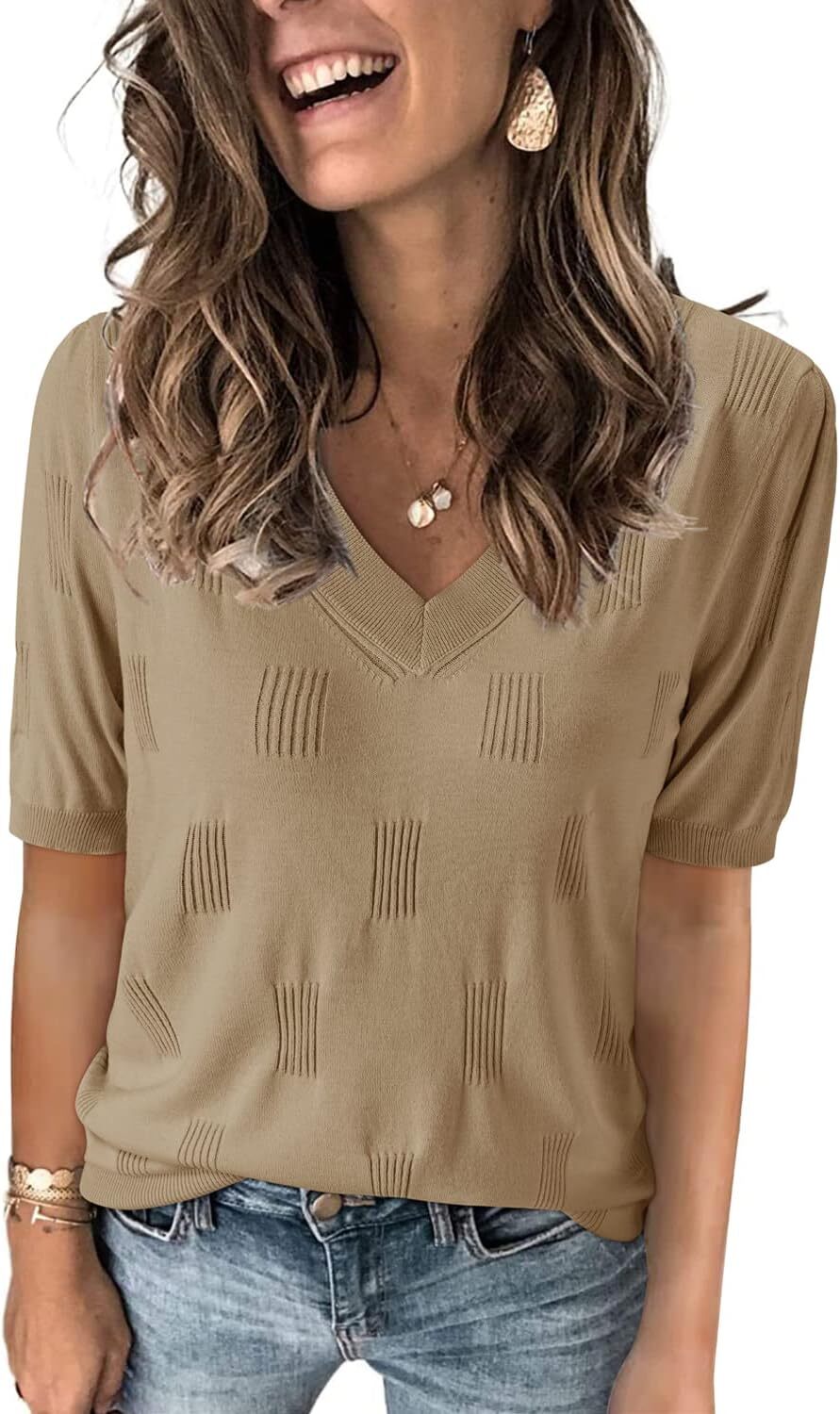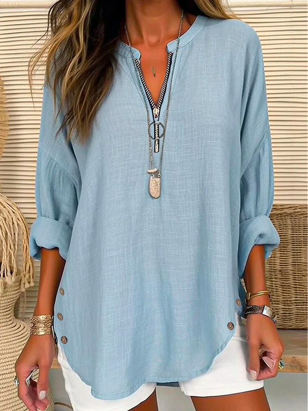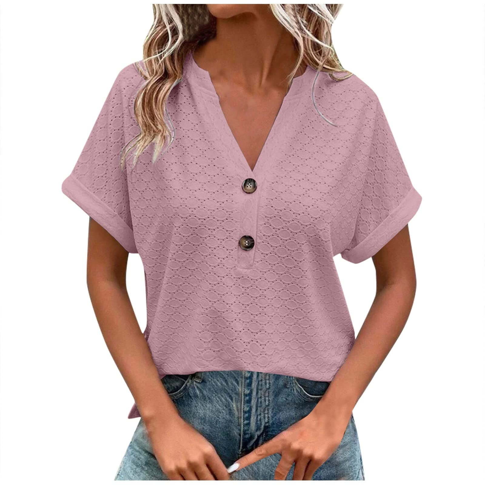 Women's Plus Size Fashion Casual Solid Button V Neck T-shirt