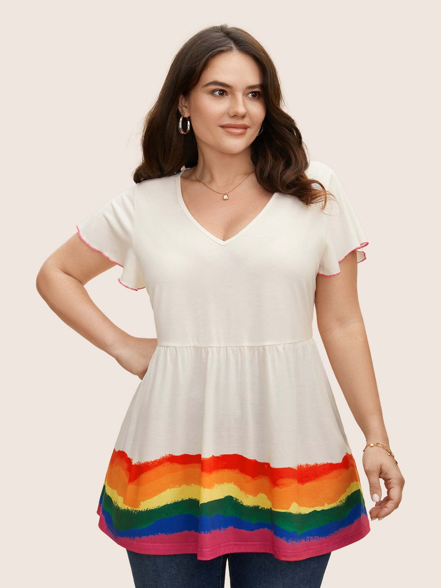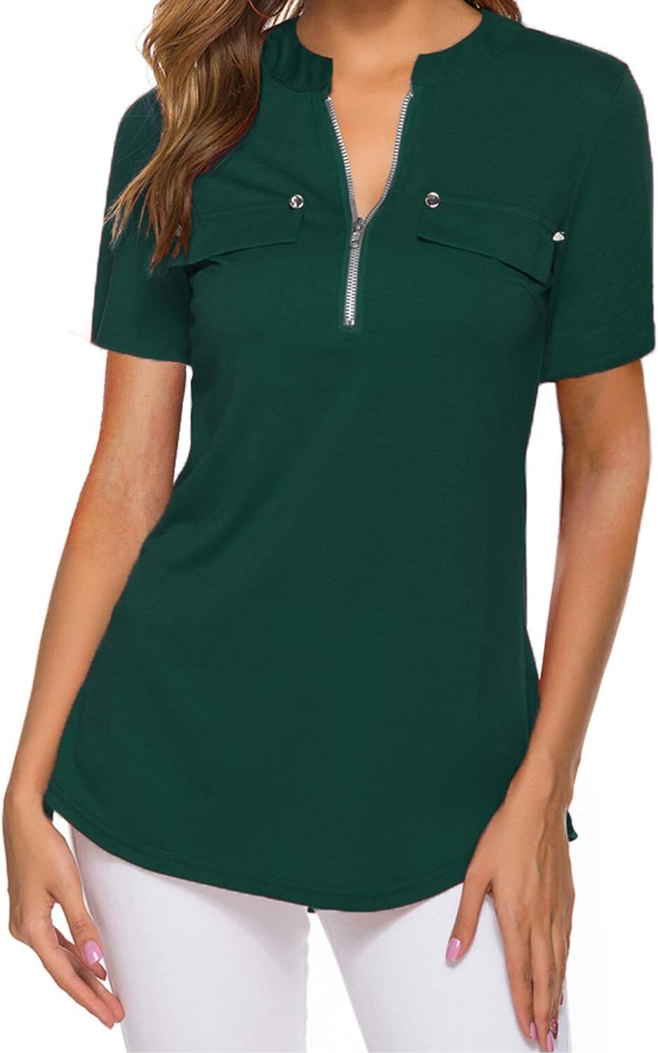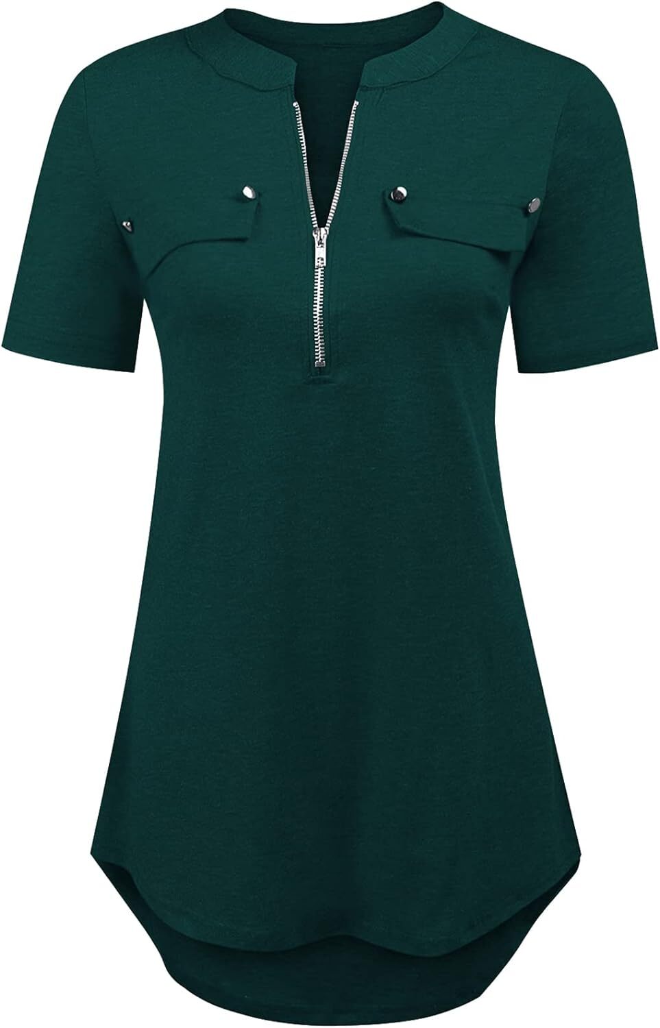 Women's Plus Size Fashion Casual Solid Button V Neck T-shirt