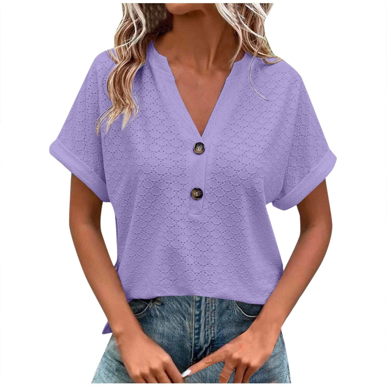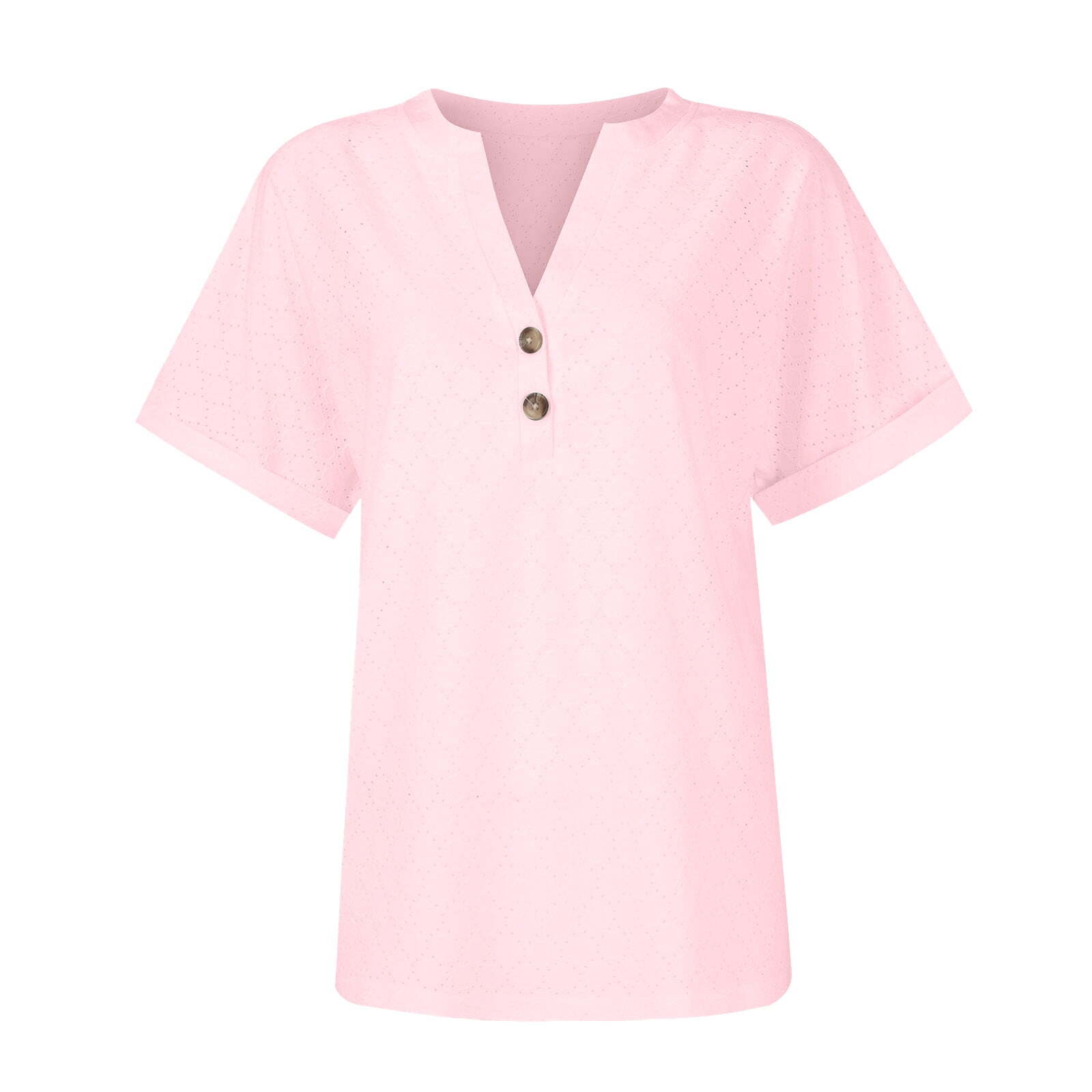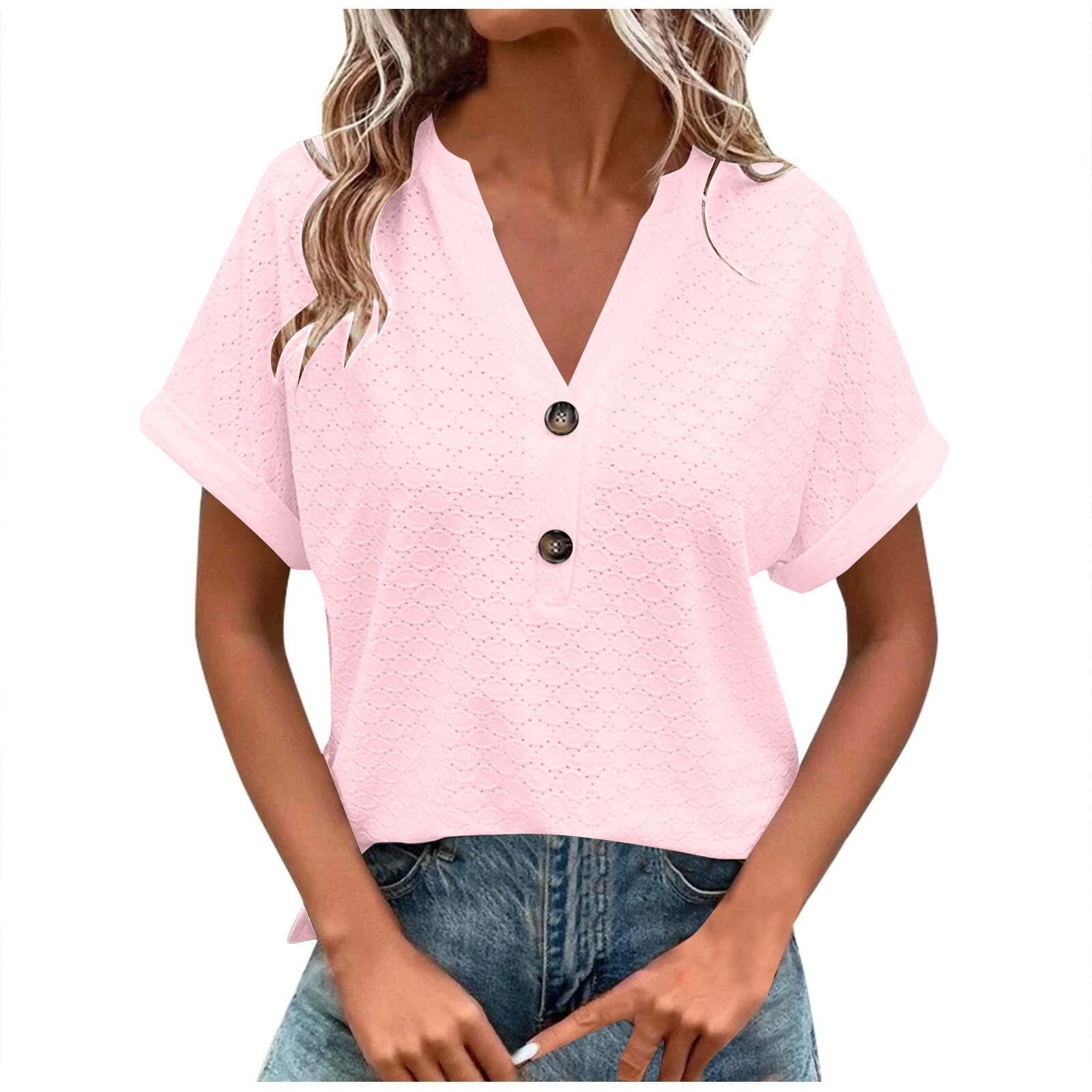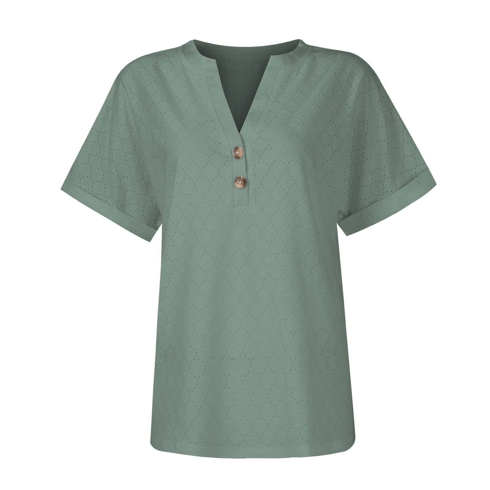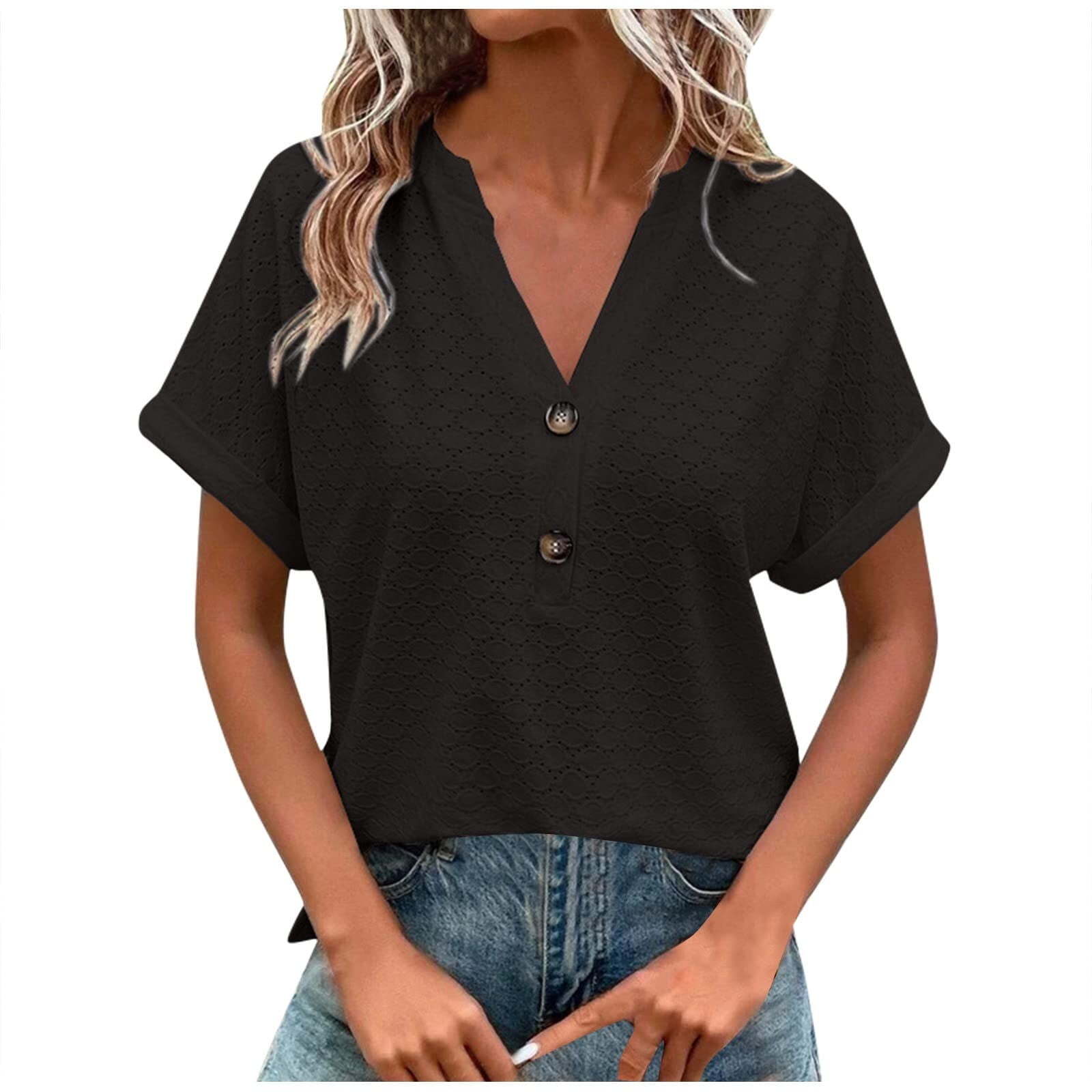 Women's Plus Size Fashion Casual Solid Button V Neck T-shirt
