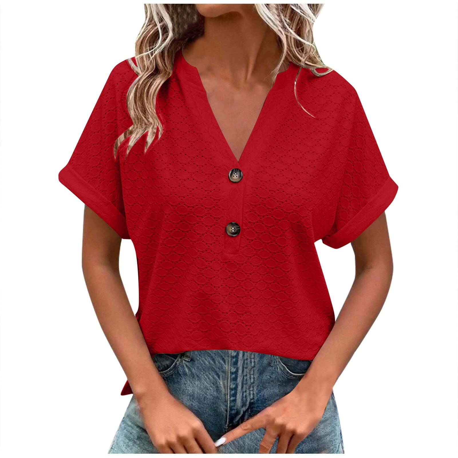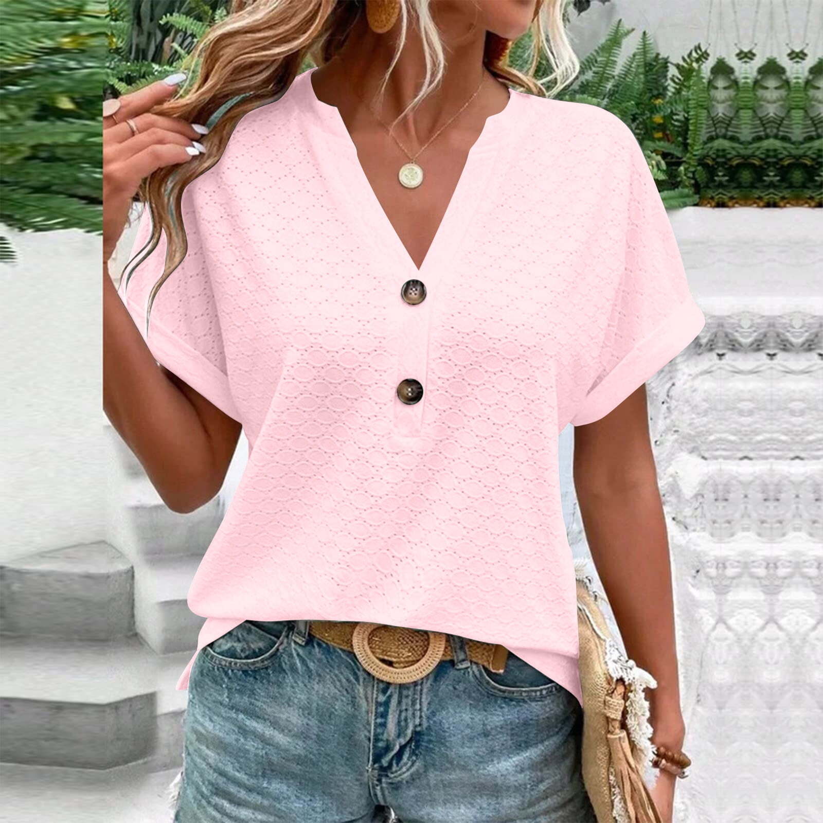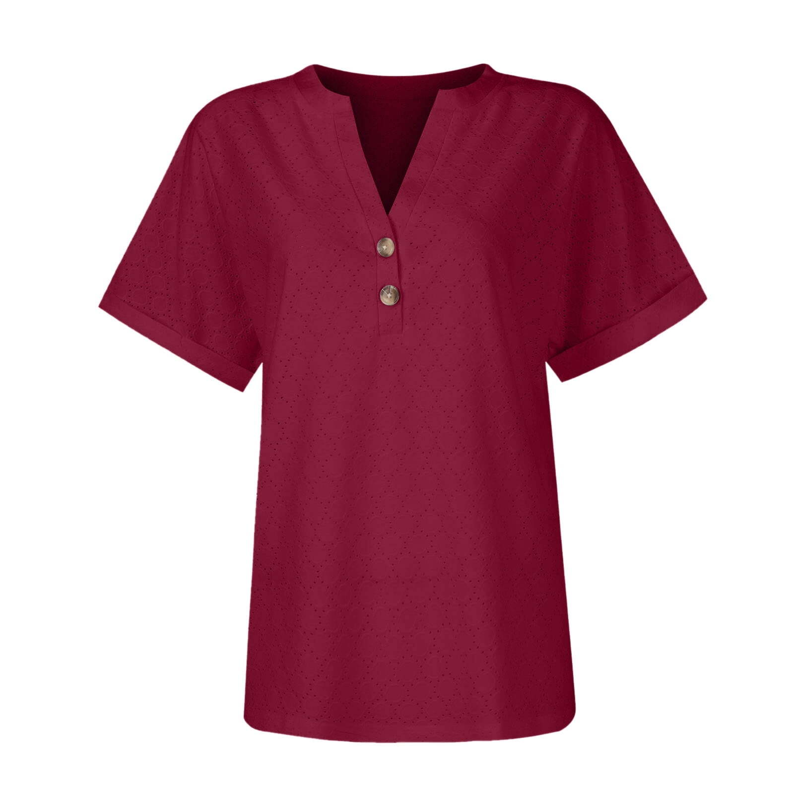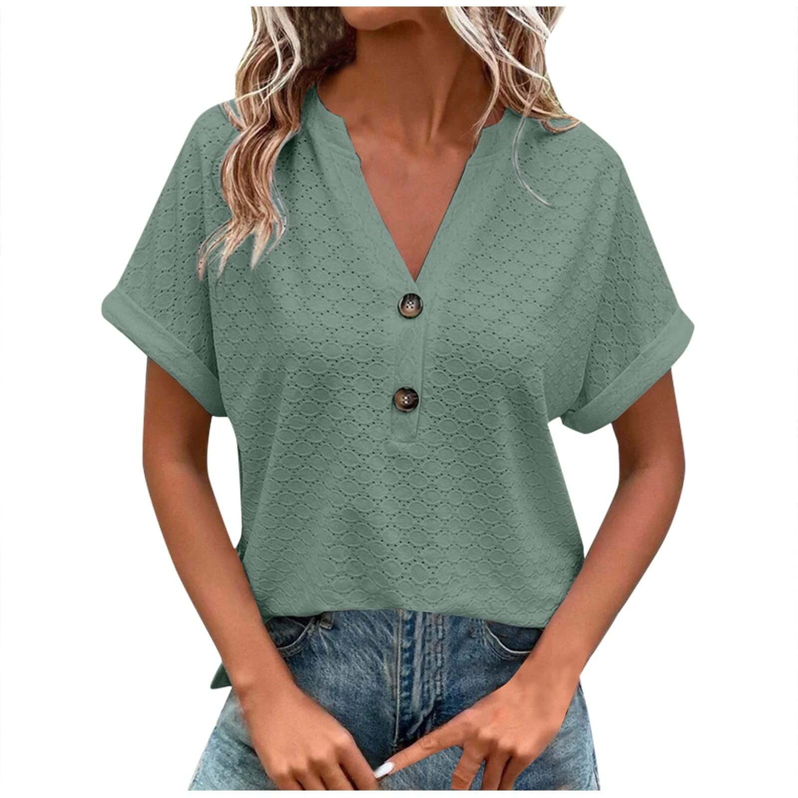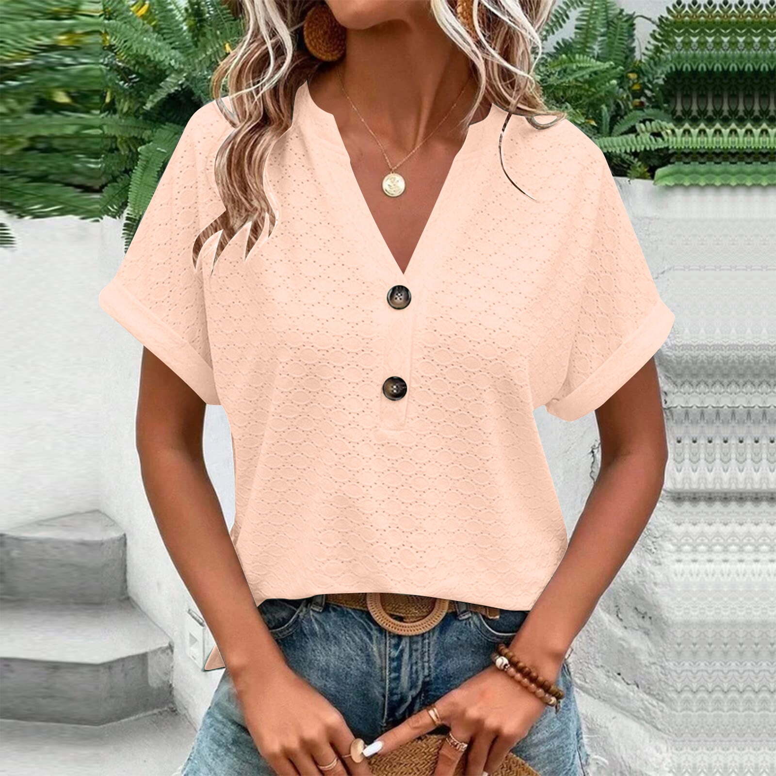 Women's Plus Size Fashion Casual Solid Button V Neck T-shirt