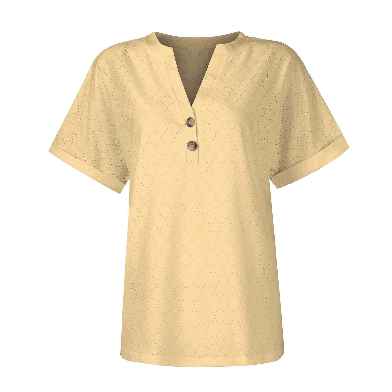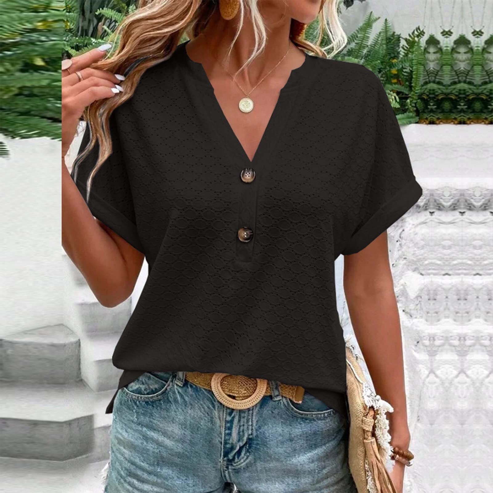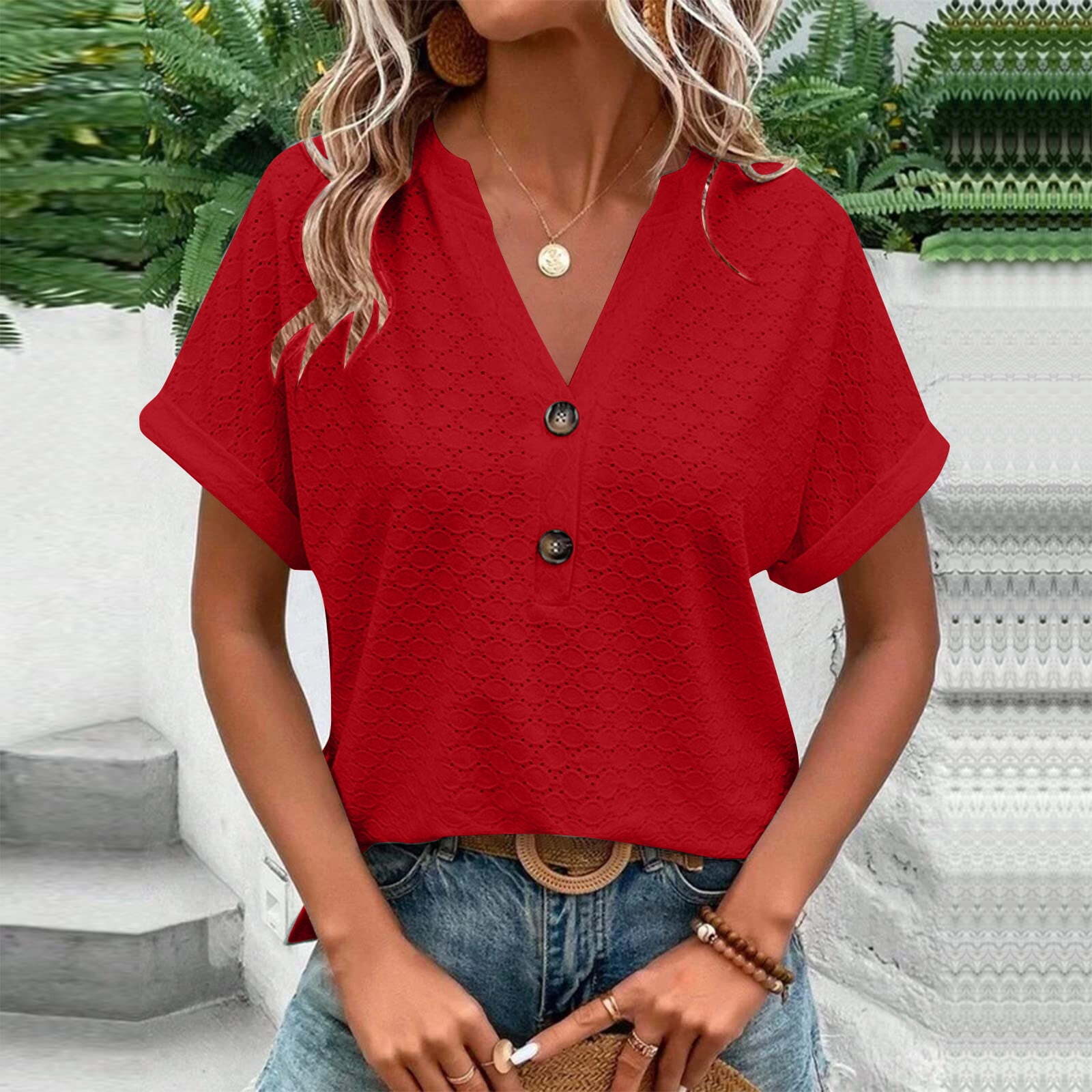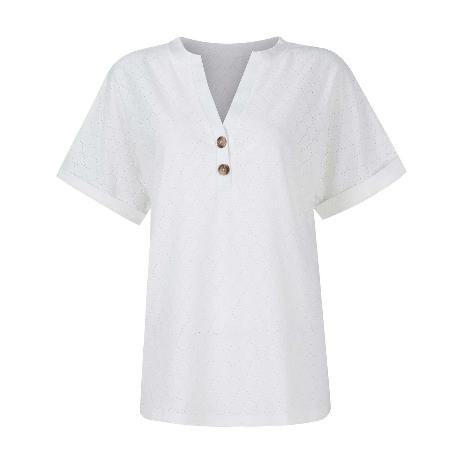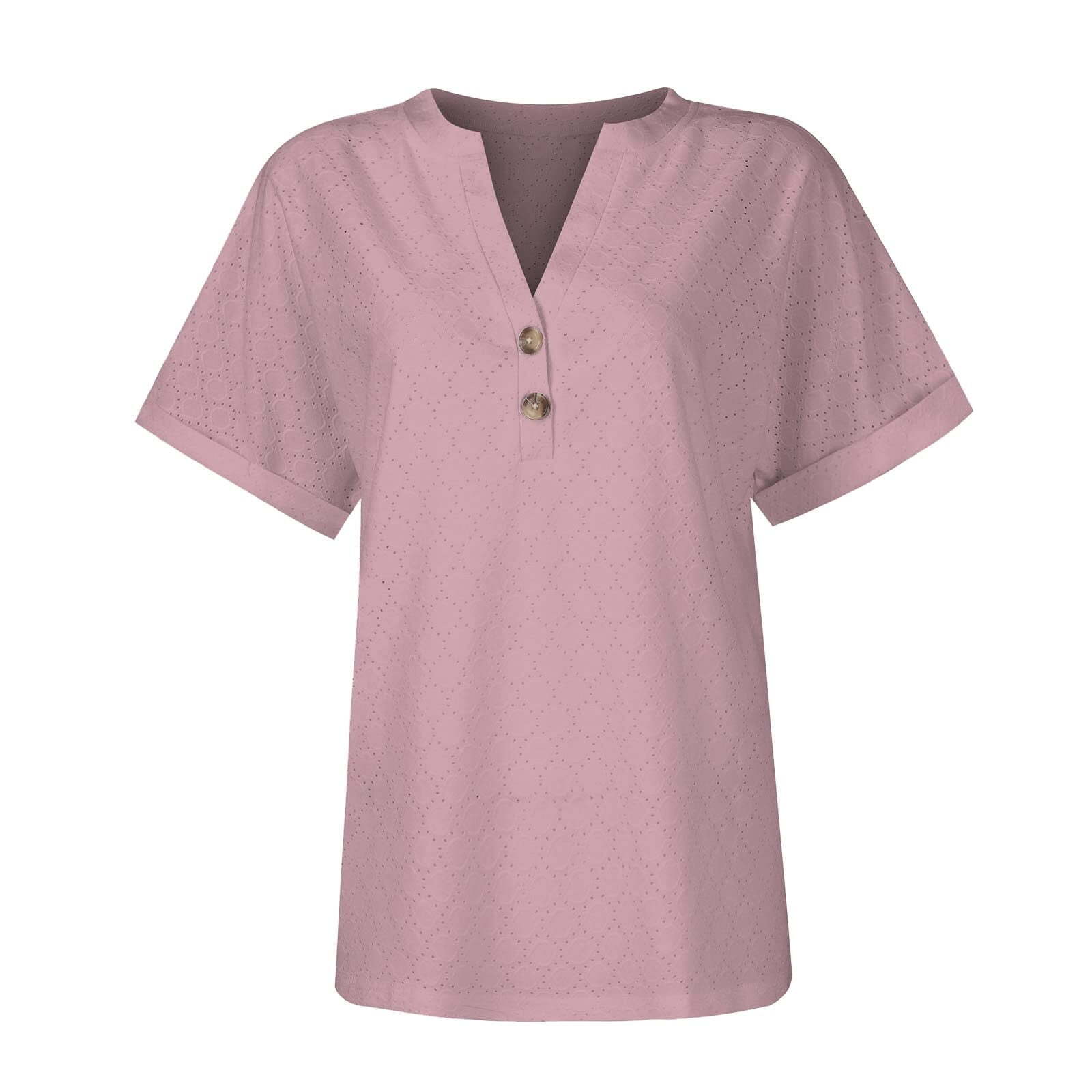 Women's Plus Size Fashion Casual Solid Button V Neck T-shirt
