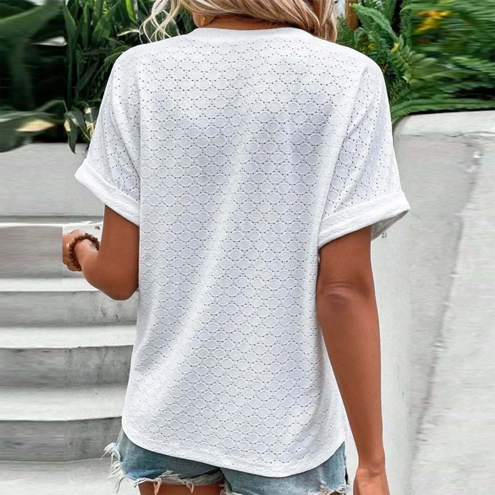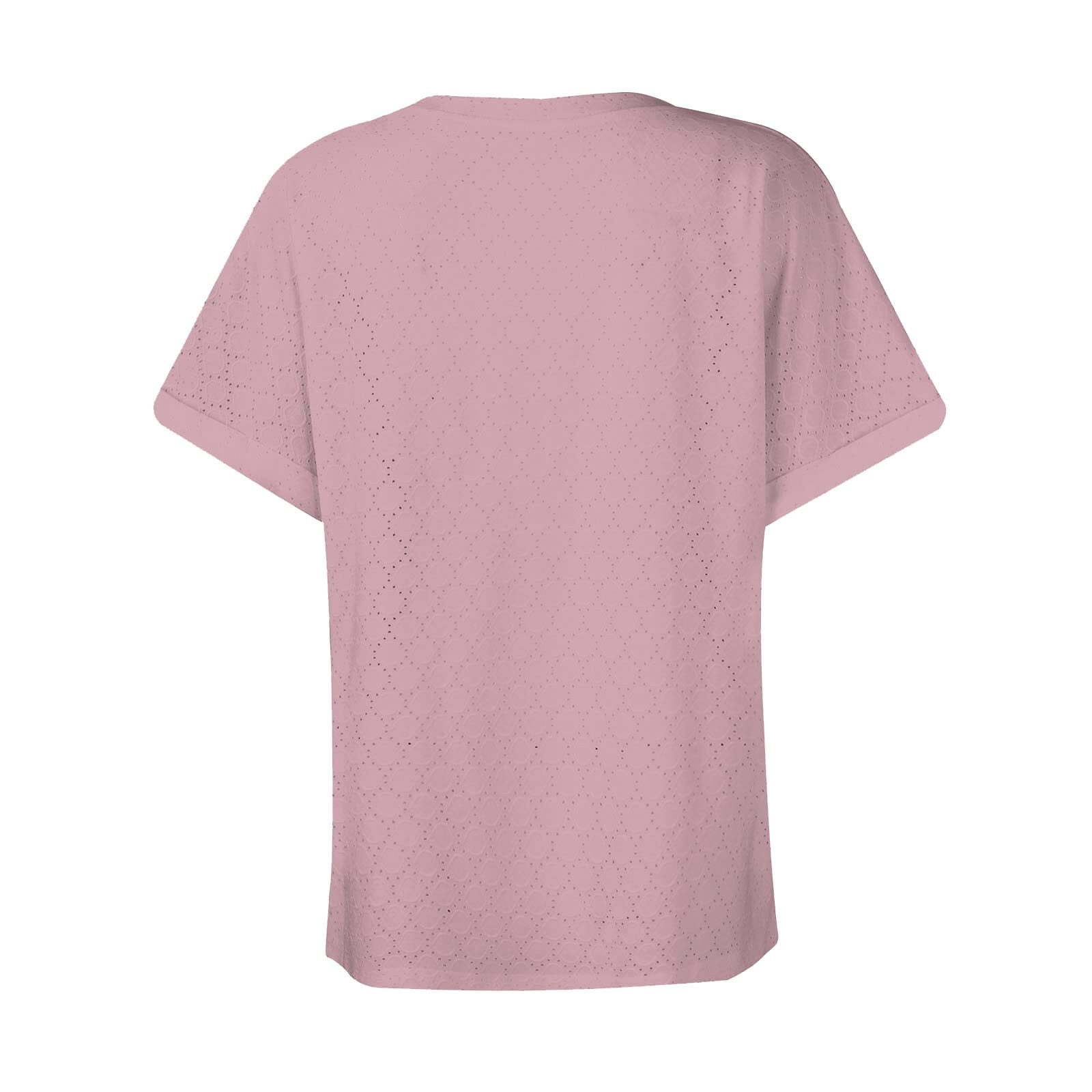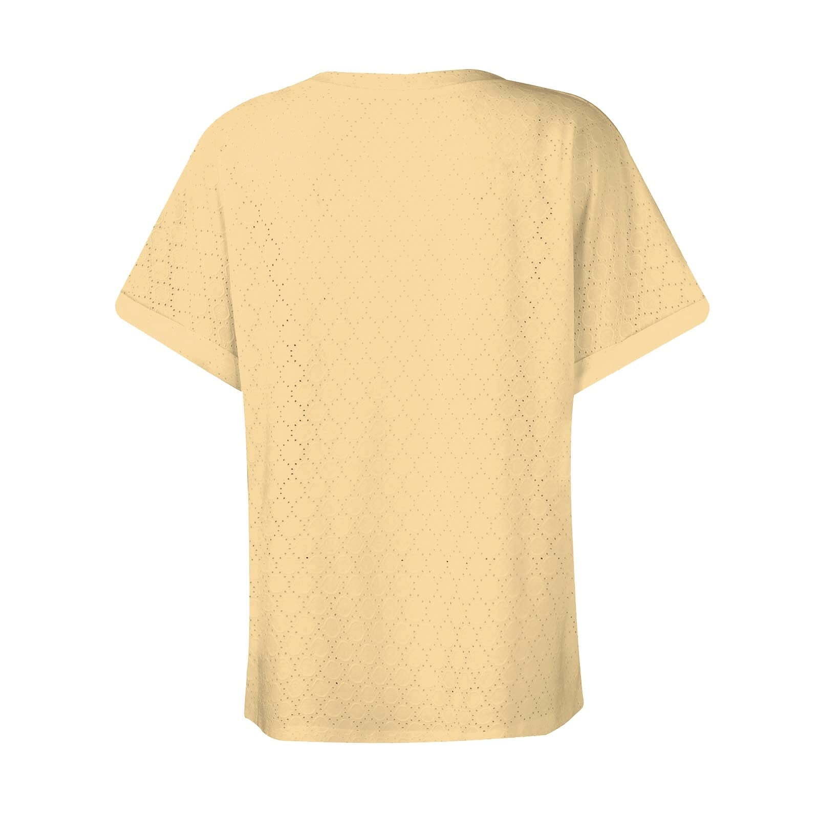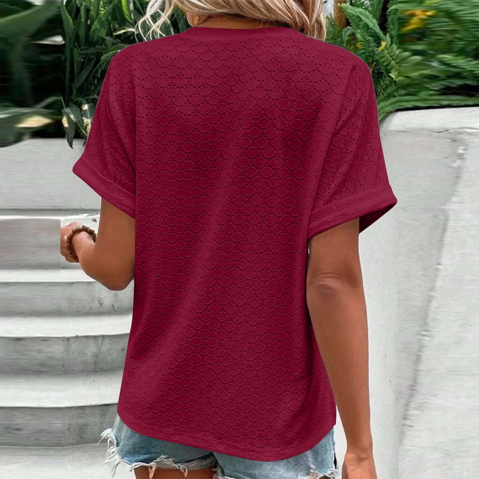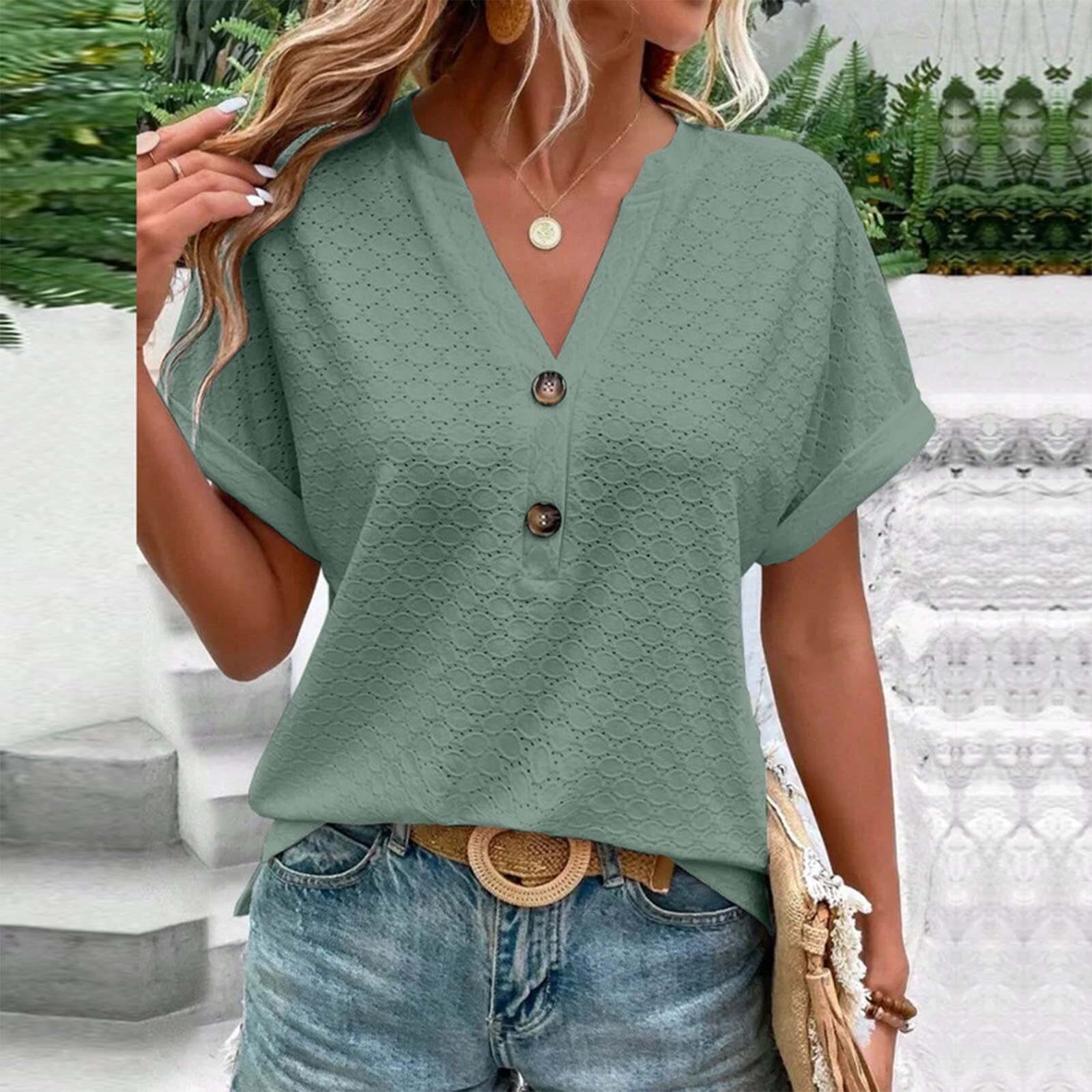 Women's Plus Size Fashion Casual Solid Button V Neck T-shirt