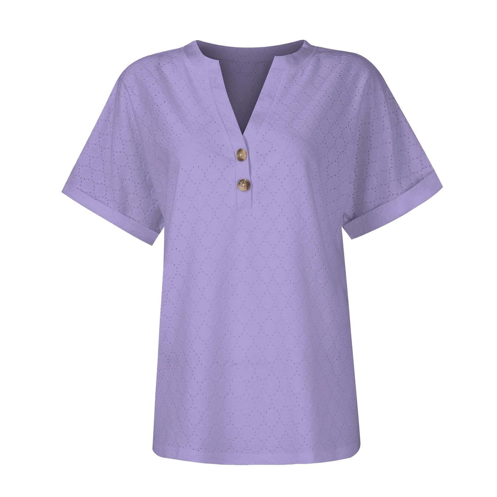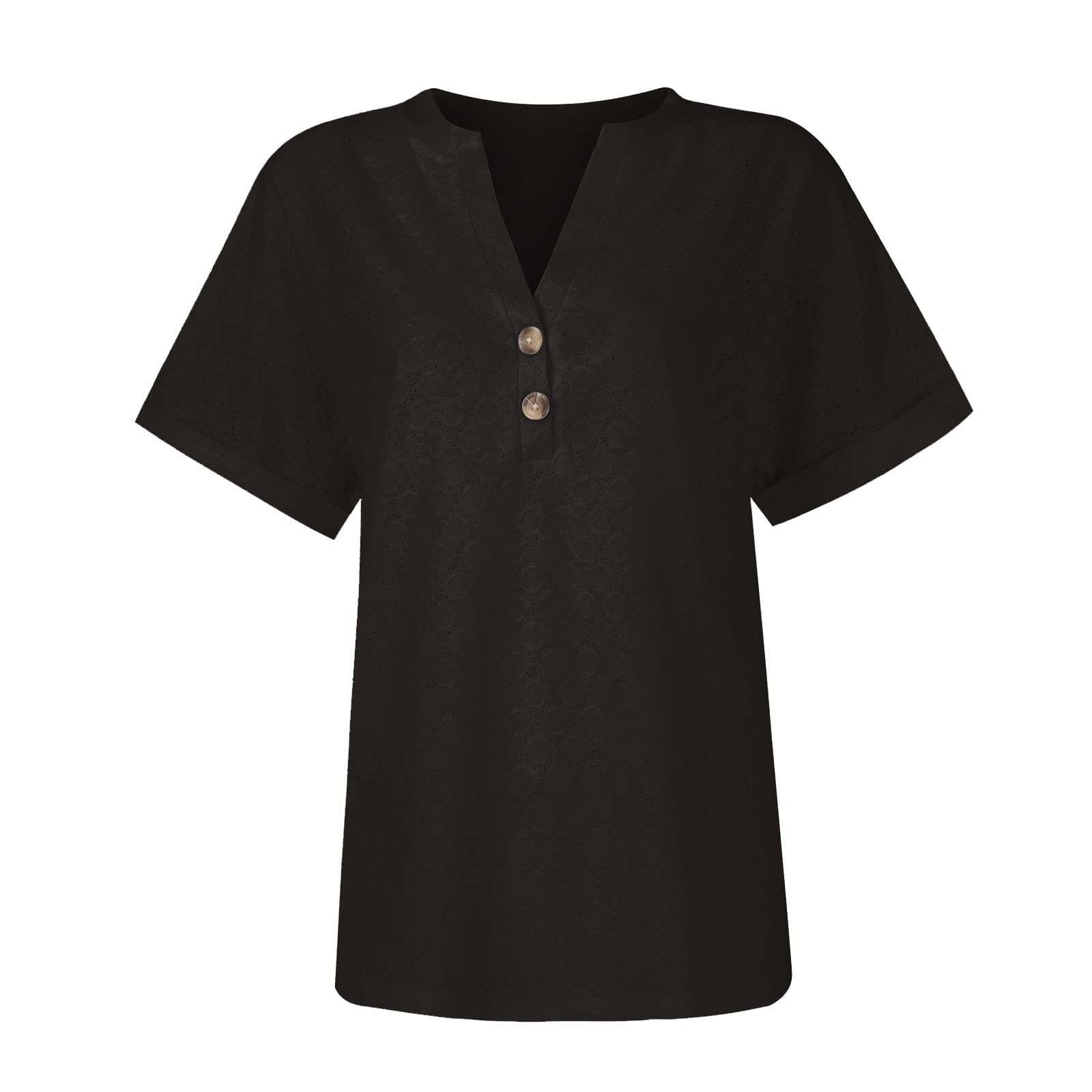 • Women's Plus Size Fashion Casual Solid Button V Neck T-shirt