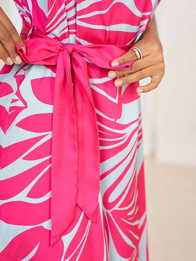 • Women's Tank Dress Geometric Bow Tie Crew Neck Maxi Dress Stylish Daily Sleeveless Summer